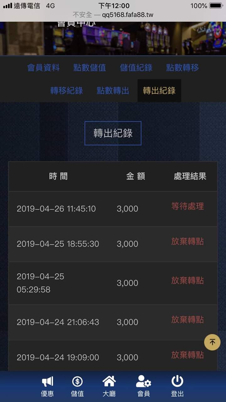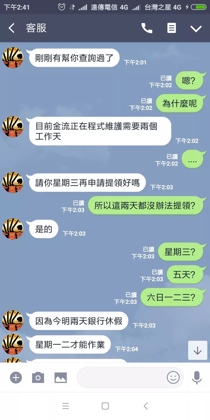 大贏家娛樂城誇張 入了兩萬都不出金 詢問客服一堆藉口就是不出 一直拖延 小心了各位!