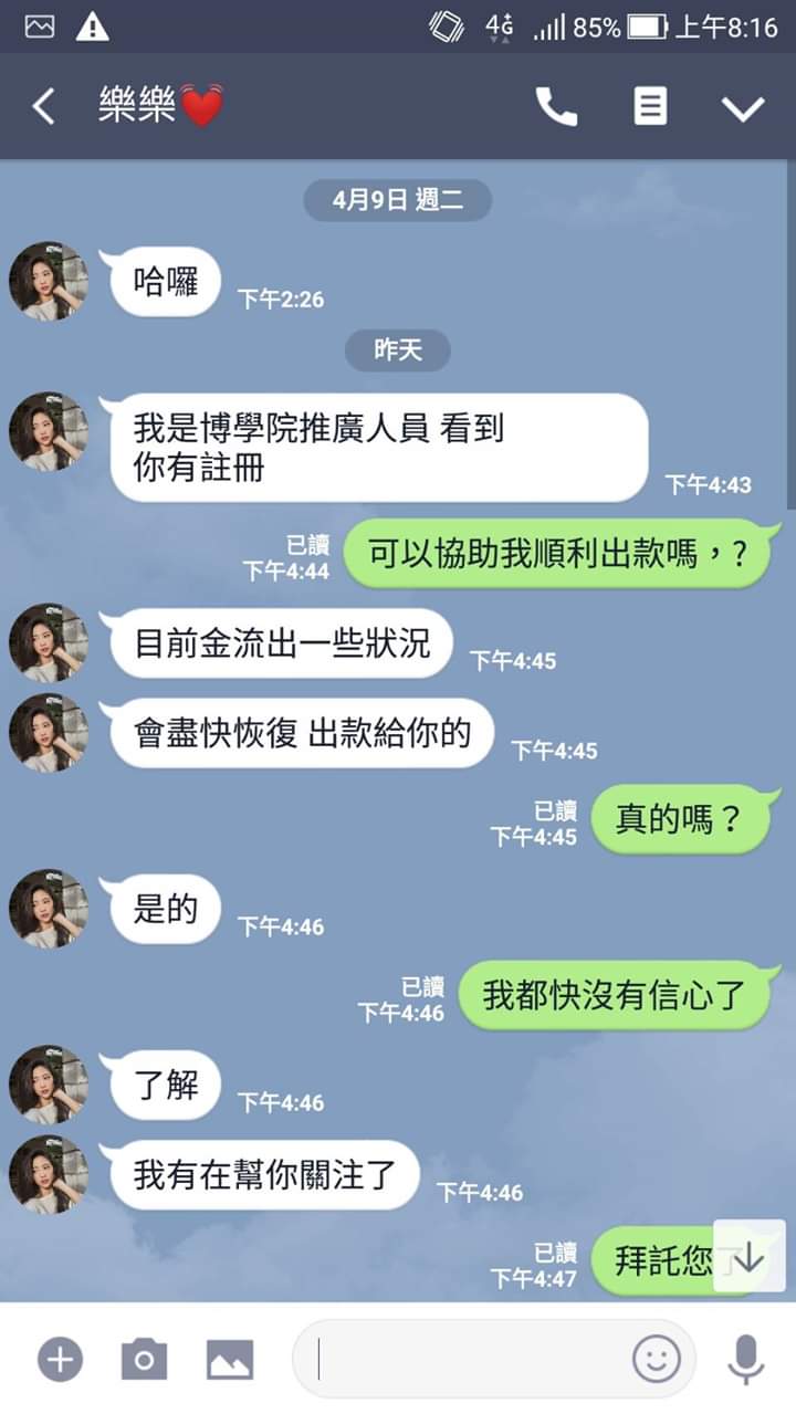 中途有推廣人員聯絡,說提款絕對沒問題