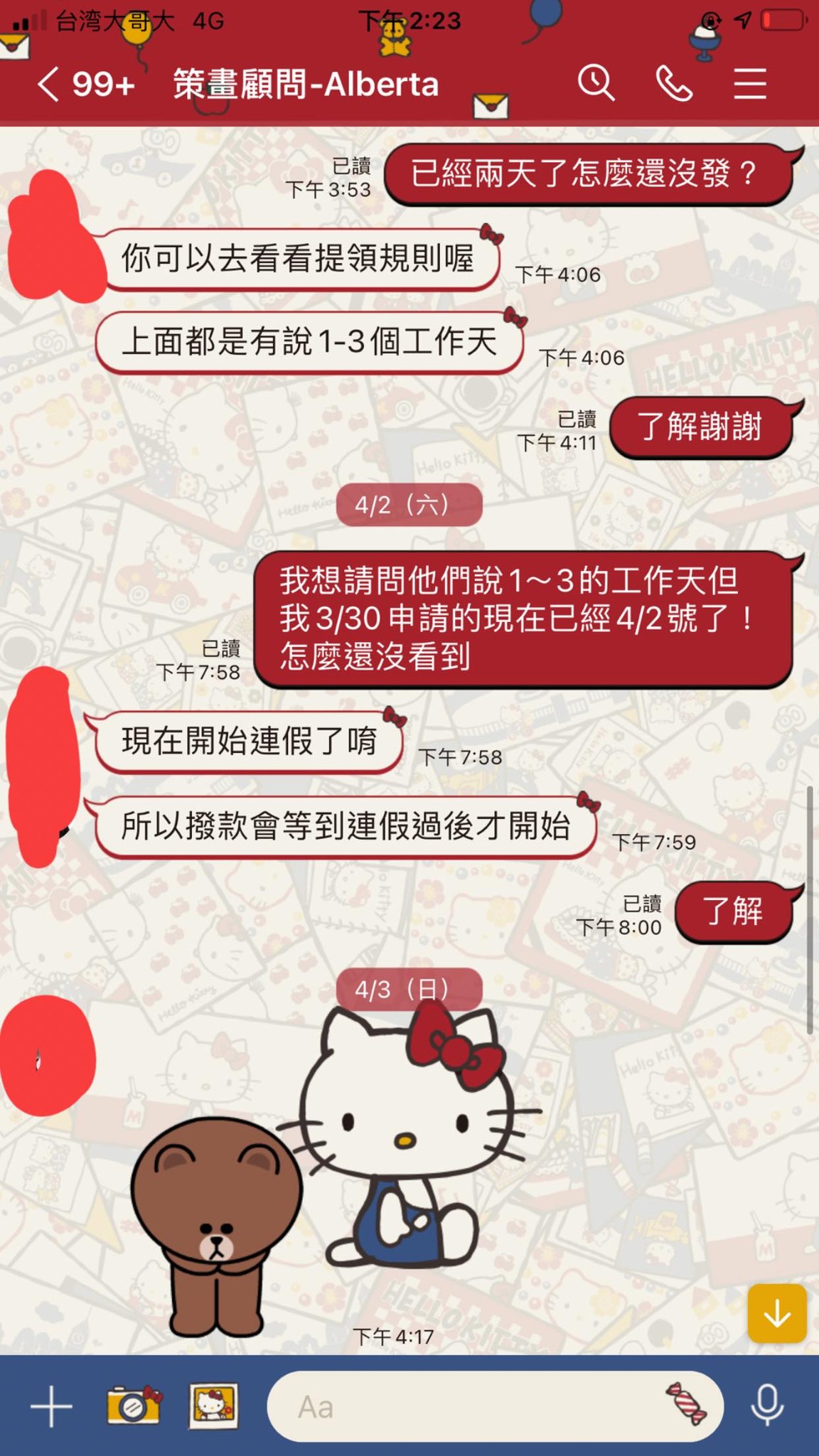 然後就一直說:因為連假所以太多人報名領薪水了要排隊!然後我就再試試看過了幾天他們會怎麼說我就問客服結果客服就把我從賴的群組給刪了!