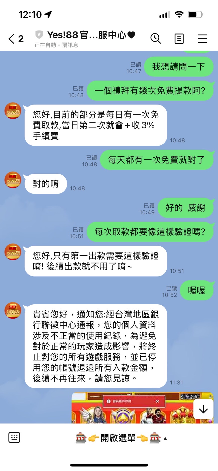 S8(super8娛樂城)改名叫YES!88娛樂城贏個幾萬塊就隨便找個理由把你鎖帳號,還聯徵中心通報,聯徵中心甚麼時候會跟娛樂城連線了?真的笑死人了。只能輸不能贏的娛樂城千萬別碰,這個網站還保證出金,別搞笑了。