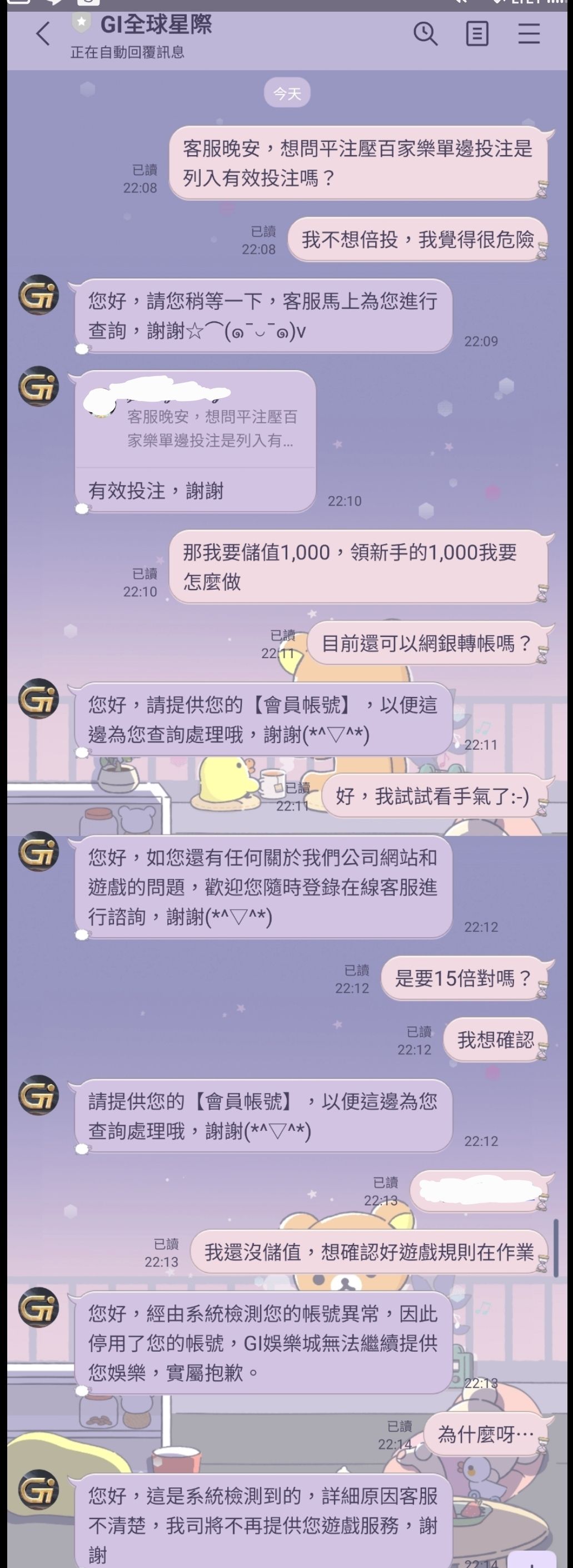 真的非常的不可思議,GI全球星際客服的功能追加隨意決定鎖帳號,不過也許也是良心客服吧,還沒儲值就鎖帳號,希望我不要誤入歧途😂
